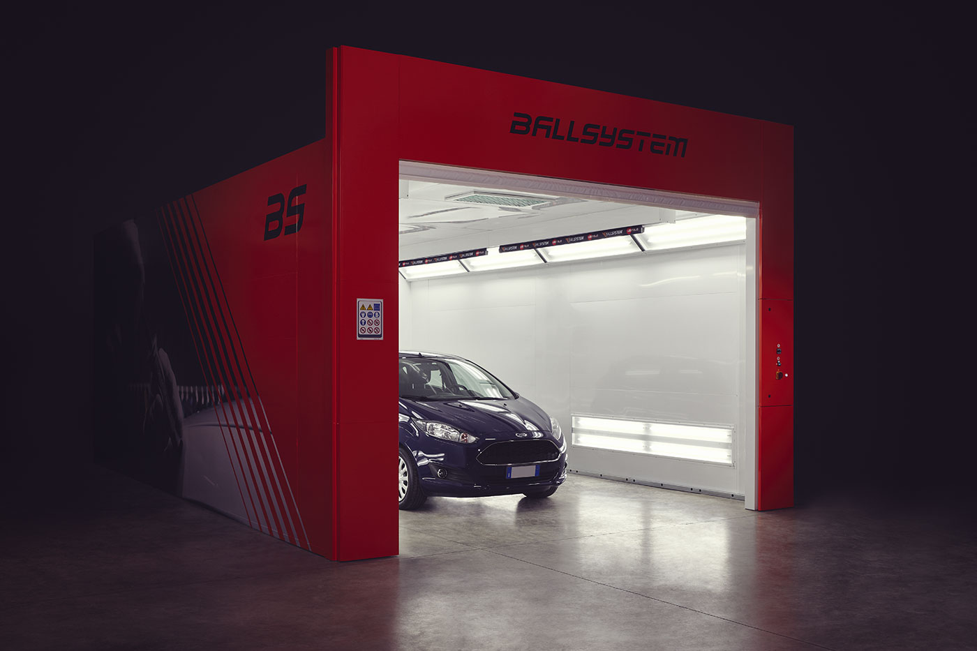 La cabina de peritaje, nacida de la colaboración con USI Italia, líder en el sector de las cabinas de pintura para talleres de carrocería, está equipada con luces LED en paredes y techo y cortinas zebra regulables electrónicamente en todos los lados: una solución que permite agilizar y hacer impecable la detección de daños por granizo y agentes atmosféricos, maximizando la eficiencia en la canalización de grandes volúmenes de vehículos.